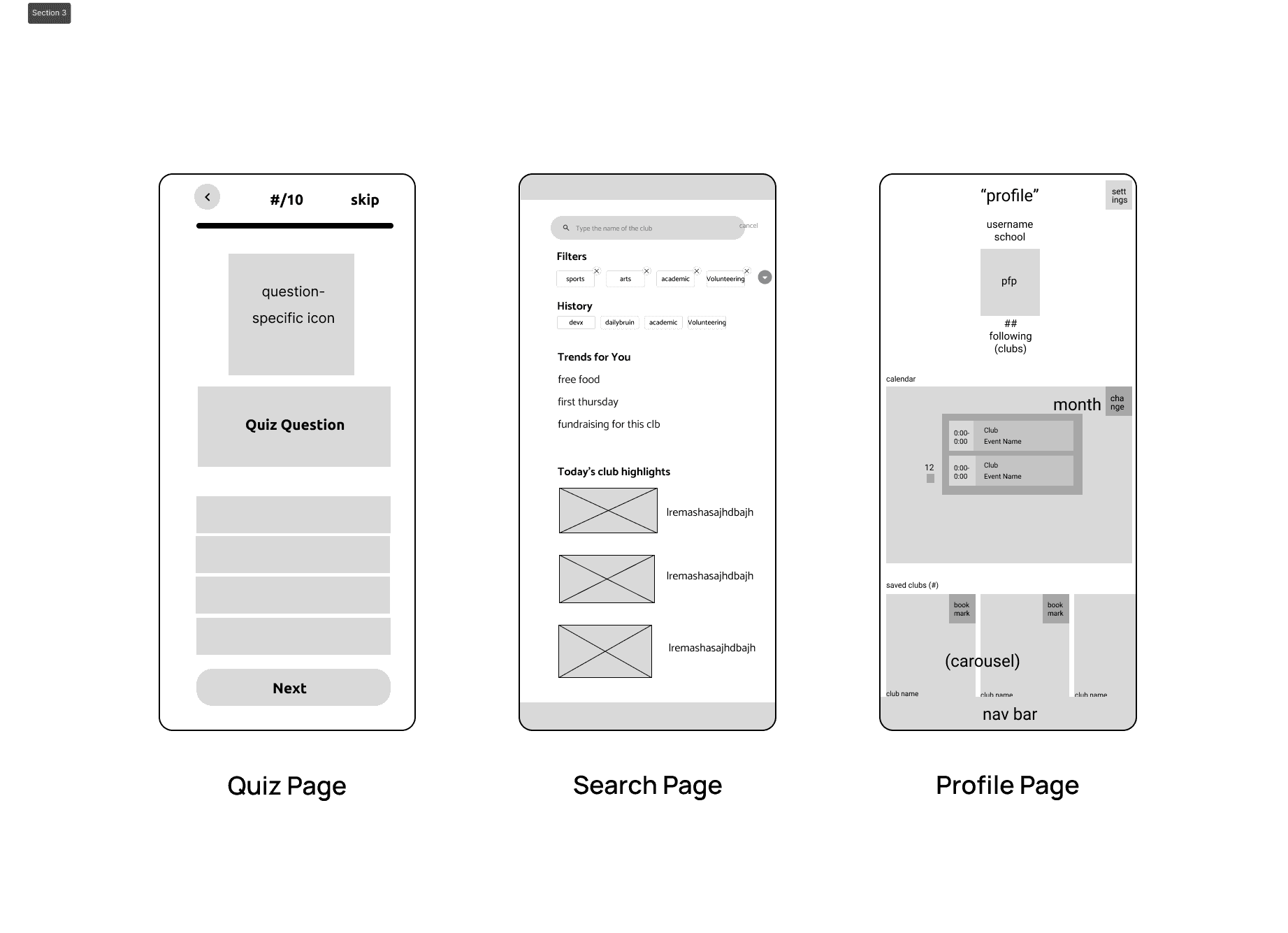We quickly iterated and got initial feedback from potential users. UI from other apps such as Instagram (for the homepage), Duolingo (for the quiz page), and Google Calendar (for the calendar page) were referenced as a starting off point for some of our wireframes as many students were already familiar with their layout.