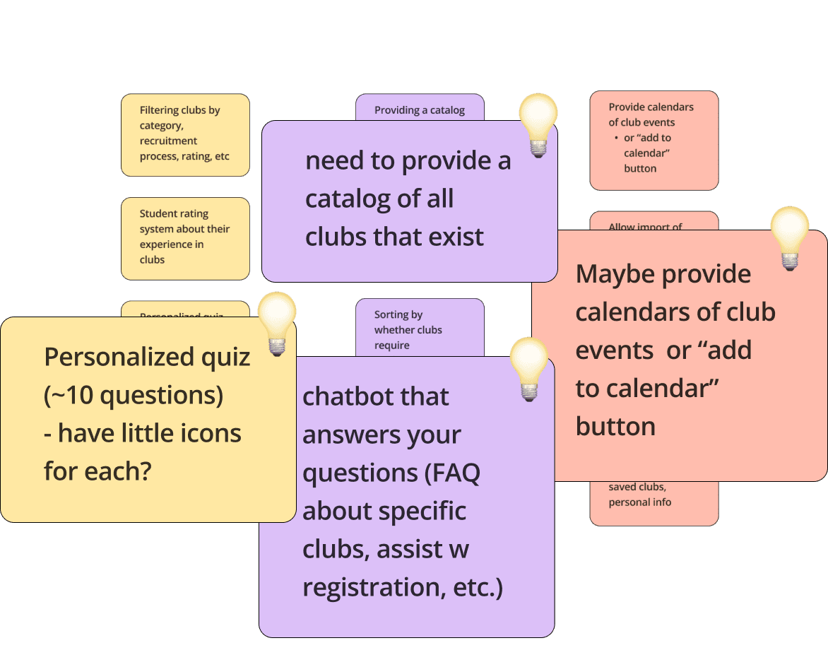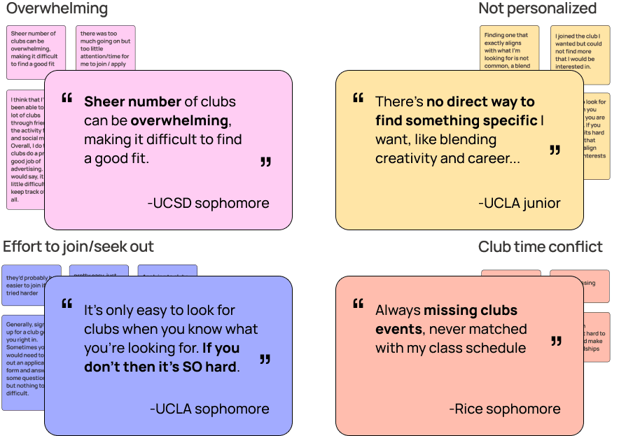 In order to gain more clarity in regards to the struggles college students face when finding clubs, we sent and received 30 surveys from college students across the US. Our most eye opening findings were that…
