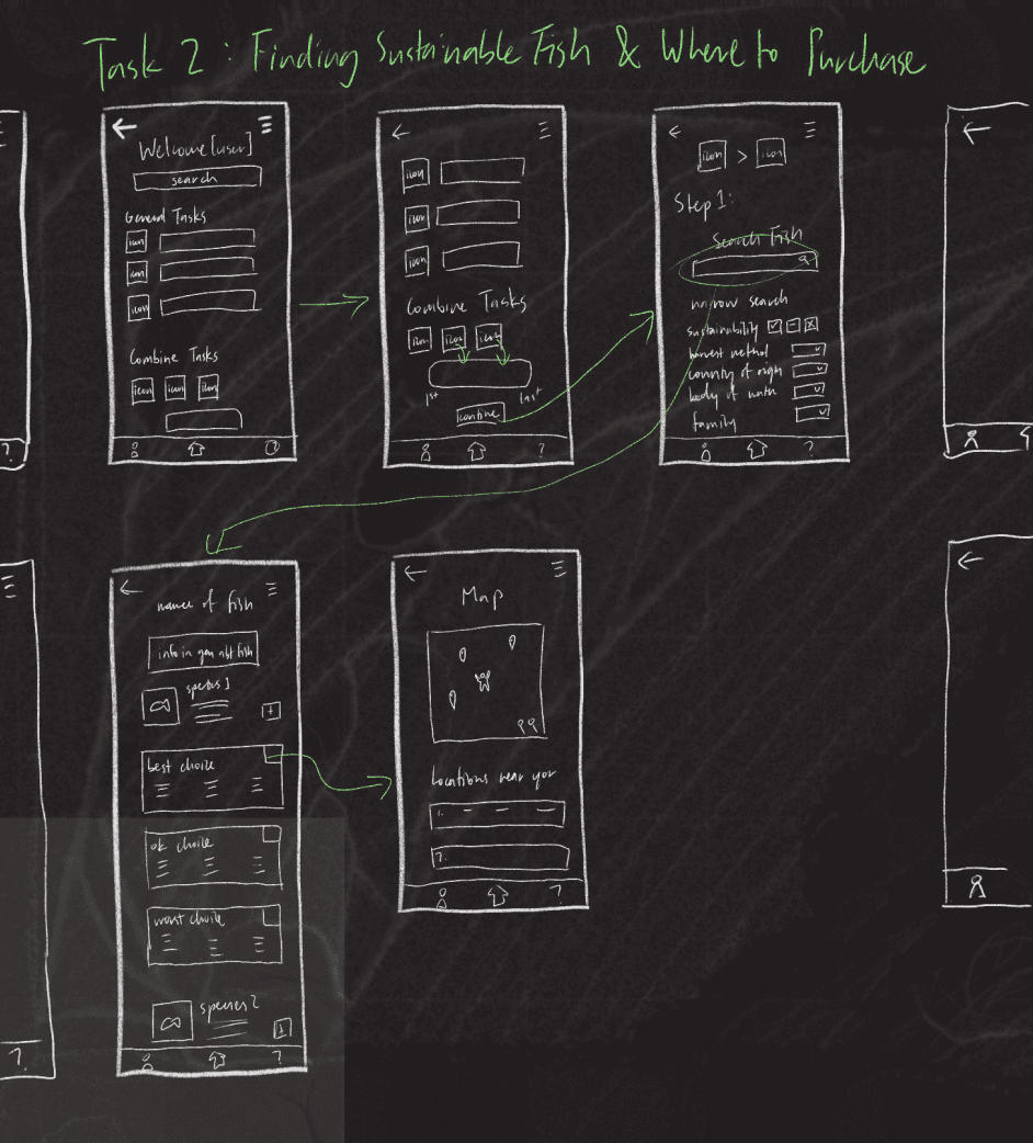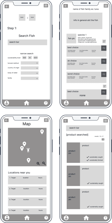 To gain a better understanding of my potential user base, I conducted a contextual inquiry on a pescatarian who can cook her own meals. The interview consisted of activities designed to give me insight into her thought process behind tasks related to sourcing sustainable seafood. From the insights I gained, I was able to start thinking about why and how a user would utilize the app.