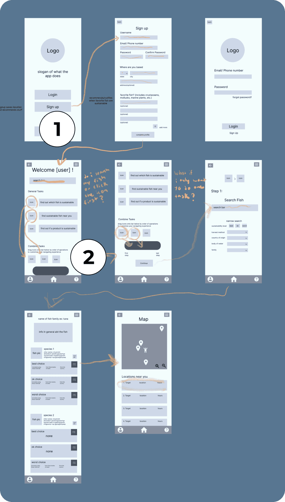 I tested the structure of my low fidelity prototypes, having participants demonstrate how they would naturally navigate between the different features by drawing on the wireframes directly about how they would navigate them. Their feedback revealed opportunities to streamline the login process and integrate educational content more seamlessly into the shopping experience.