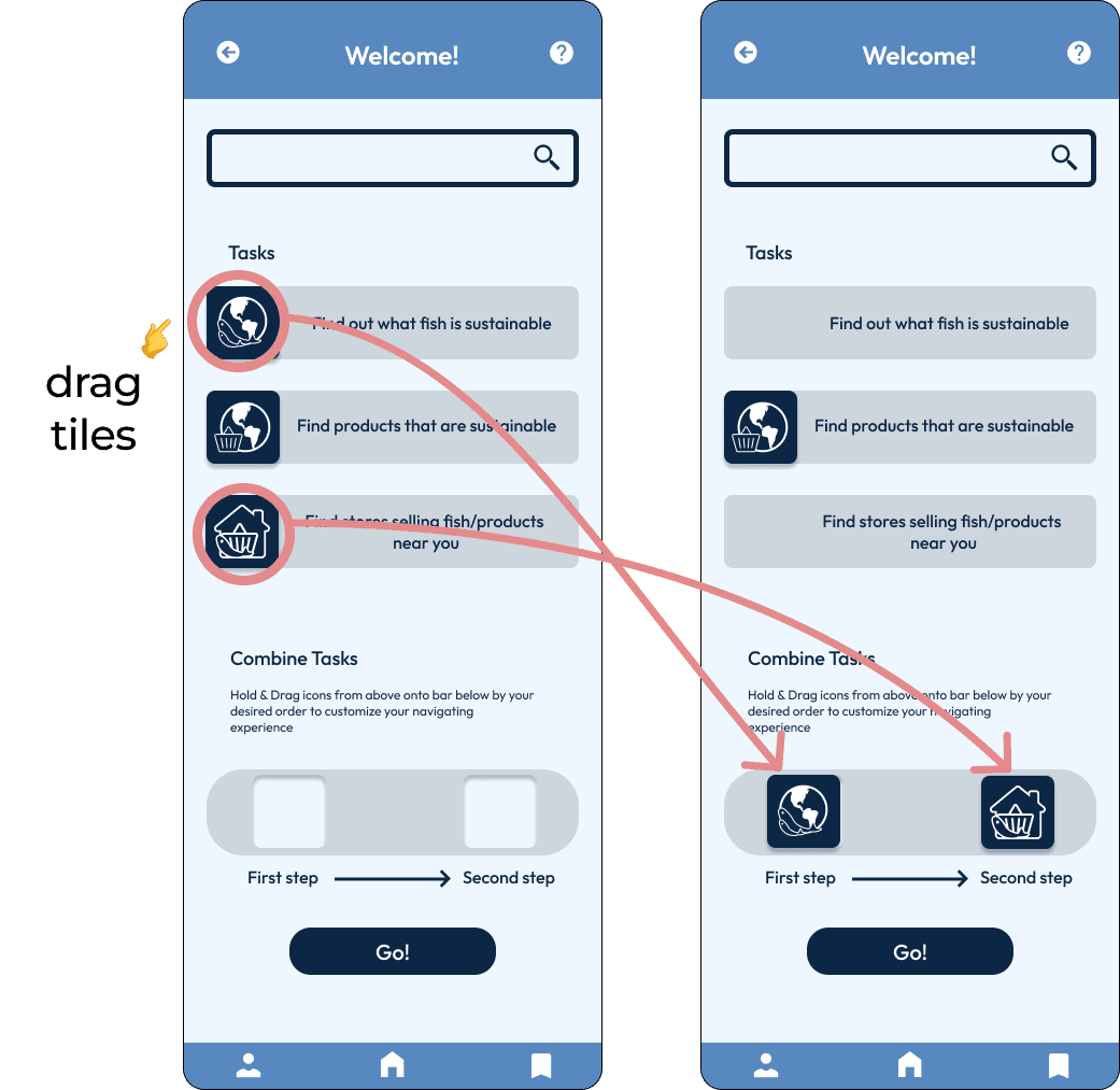 2. combining tasks feature was confusing, as user didn’t know there were tiles to be dragged.