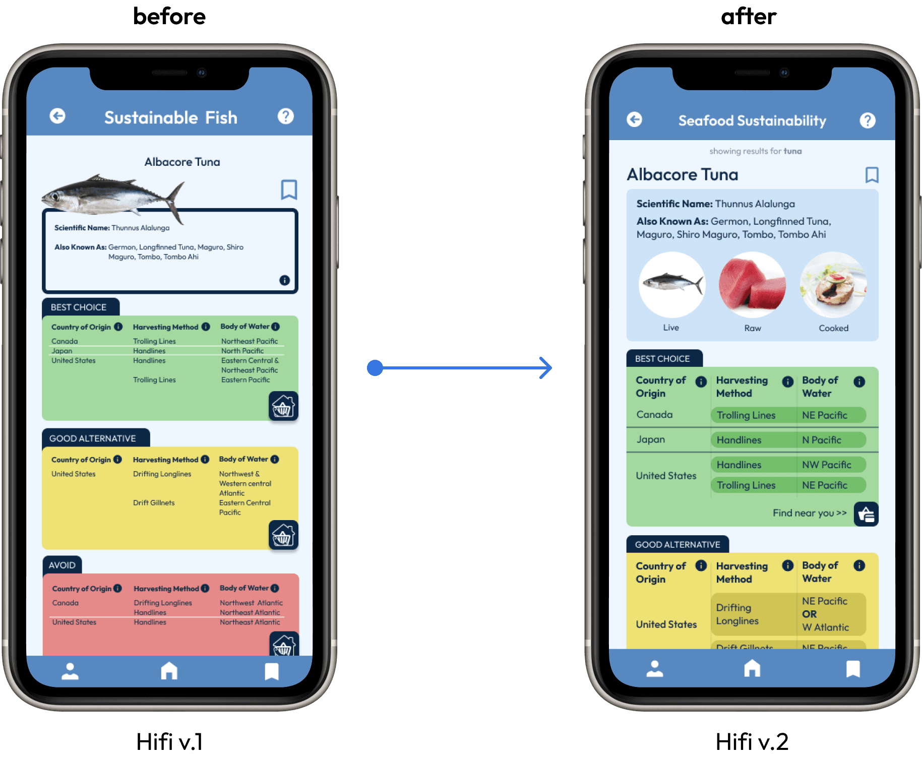 Design an intuitive mobile experience that reduces the complexity of sustainable seafood purchasing by PROVIDING CLEAR SUSTAINABILITY INFORMATION and REAL-TIME AVAILABILITY, enabling users to make environmentally conscious DECISIONS WITH CONFIDENCE.